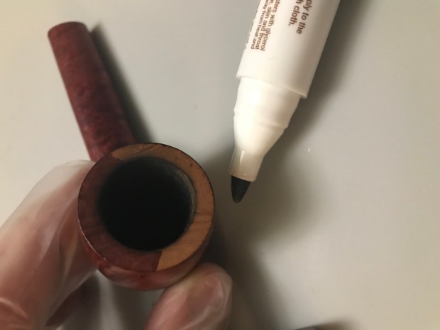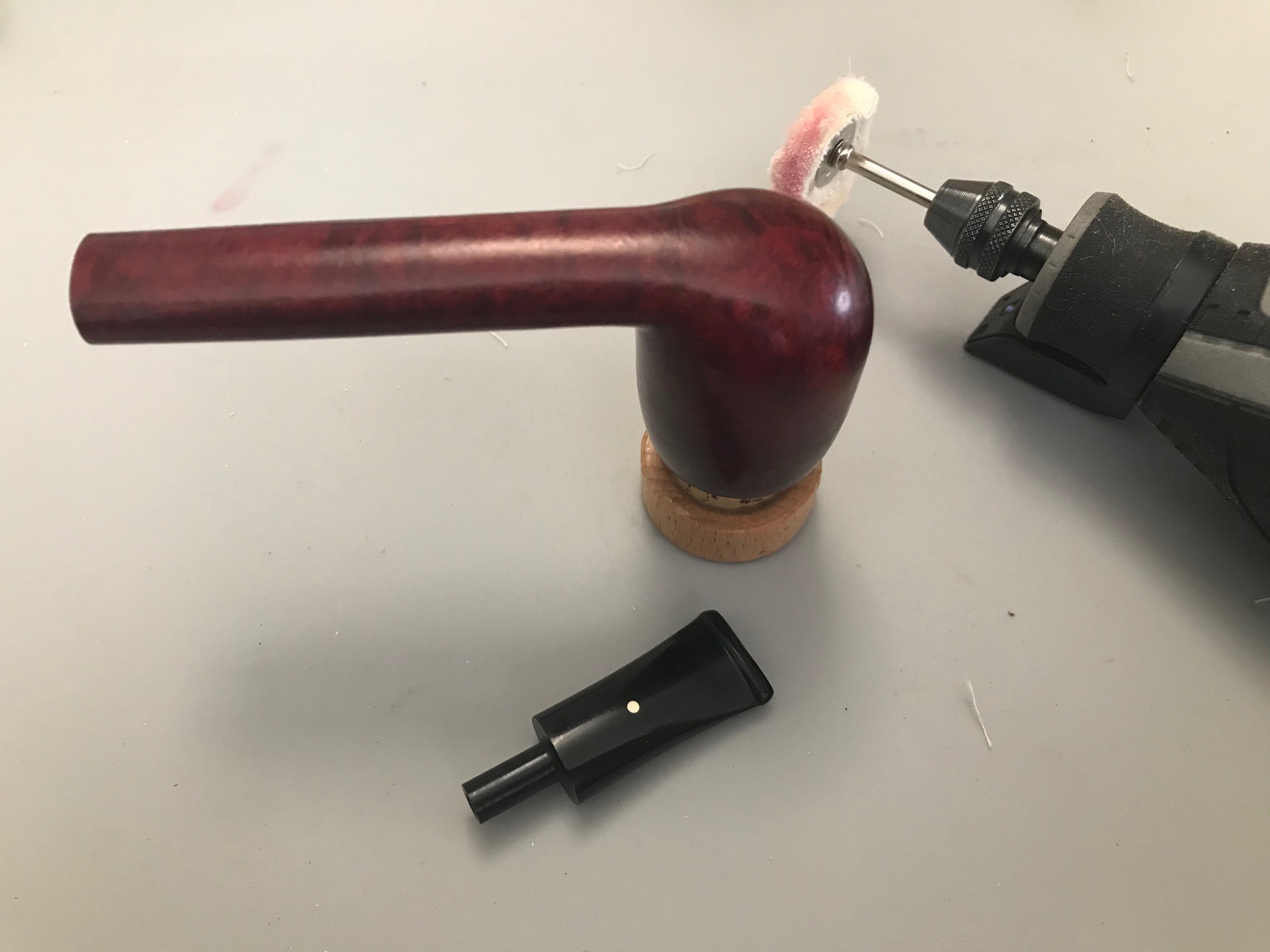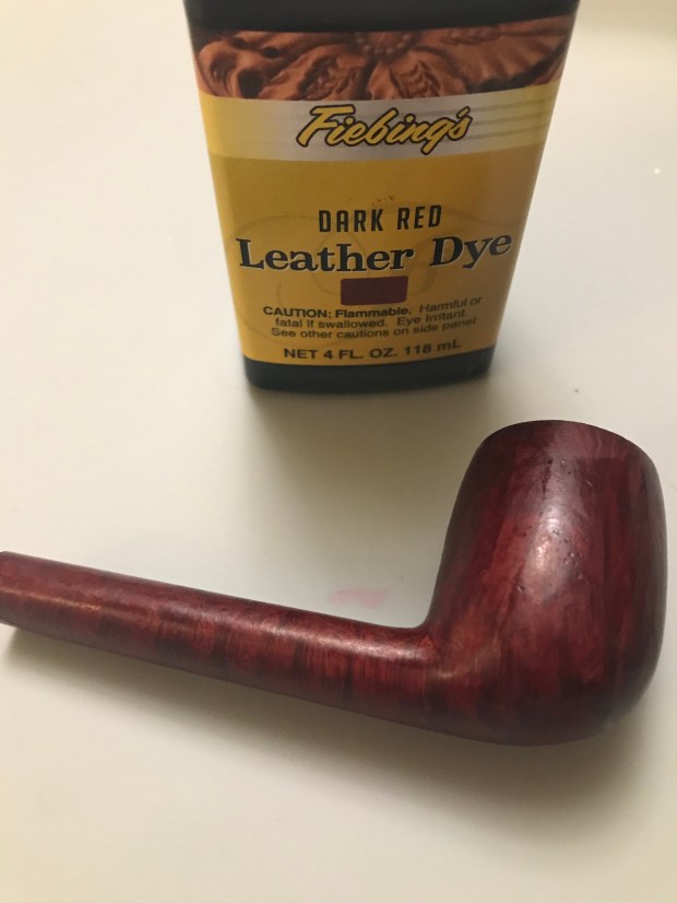 I used Dark Red Feibings Leather dye to apply the top coat on the pipe and restore the original finish of this Dunhill Bruyere.